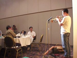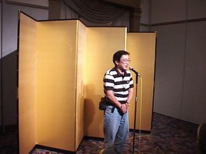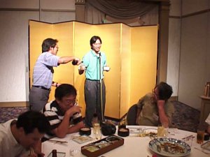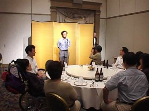 | 私も記念にと入れていただいたY(^^)ピース! | 今回の名幹事 あら坊さんのあいさつではじまる |