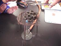 4.金網の上のナットがすべて入れてしまうころには、自分たちの班は、何度まであげることができた。ということでかなり班競争になっているはず である。いろんな工夫で、どんどん温度のあげあいになってもいいと思う。