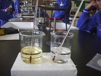 1.同量(100g)の水と食用油をビーカーに入れ、温度をはかっておく。