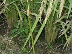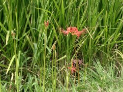 夏休みの終わりから、今か、今かと「定点観測地」で待ち受けていたが、どうもまだようである。遅れているのだろうか。なぜだろ、例年にない残暑がきびしいからであろうか。それとも雨が少ないからであろうか。待ちきれずに「定点」を離れて、朝の散歩道にさがした。02/09/07