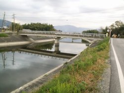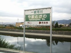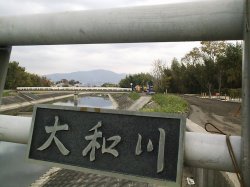 桃太郎伝説に関連するものは、そこではみつけることはできなかった。館を出て、その「ドンブリコ」の川を捜すことにした。比較的簡単に川そのものを捜すことができた。名前は大和川となっているが、これが初瀬川であることは間違いない。護岸工事をきっちりされてりっぱな川である。しばし川岸にたたずみ、昔話の世界に思いを馳せた。